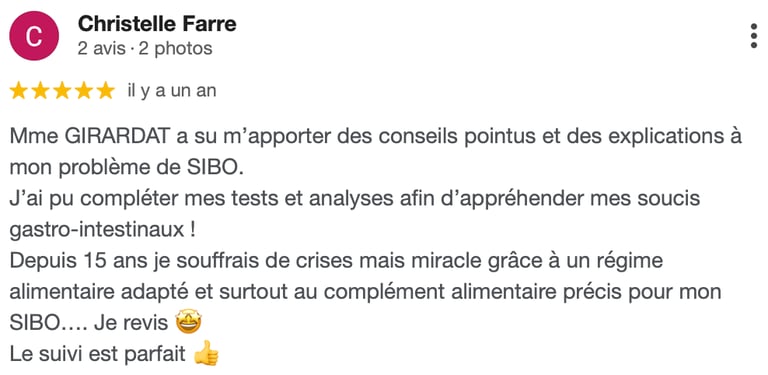 Si vous souffrez de ballonnements, SII, SIBO, MICI ou dysbiose, un suivi individualisé permet d’identifier vos déclencheurs, d’adapter votre alimentation et de réduire durablement les symptômes.